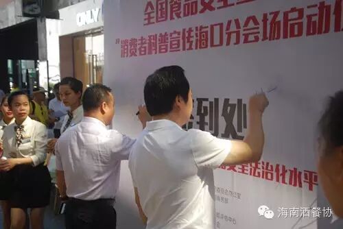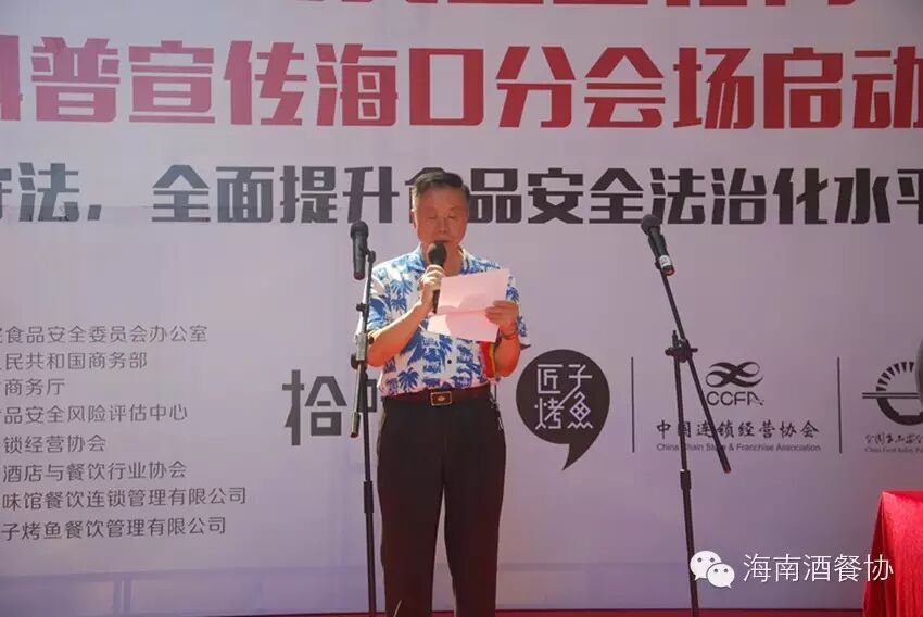 此次启动仪式上,海南省酒店与餐饮行业协会翟培基会长、拾味馆餐饮连锁管理有限公司总经理龚季弘 分别代表协会和企业就“食品安全”做了发言。同时海南省酒店与餐饮行业协会陈恒执行会长、海南省酒店与餐饮行业协会陈刚秘书长、海口麦点九毛九餐饮管理有限公司郑兵总经理、龙泉人椰子鸡汤连锁店曾海总经理、海口瑞联餐饮管理有限公司(琼菜坊)黄龙常务副总、海南莲生餐饮文化管理有限公司卢振宇董事长等作为嘉宾出席了本次启动仪式。各餐饮同行承诺:积极会同各相关部门,以宣传新修订的《食品安全法》为重点,紧扣法治与诚信两大主线扎实开展好食品安全宣传周活动。