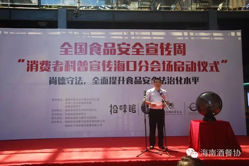 6月18日上午,由国务院食品安全委员会办公室、中华人民共和国商务部、海南省商务厅指导,国家食品安全风险评估中心支持,中国连锁经营协会主办,海南省酒店与餐饮管理协会协办,海南拾味馆餐饮连锁管理有限公司承办的“全国食品安全宣传周”海口分会场启动仪式在海口顺利举行。