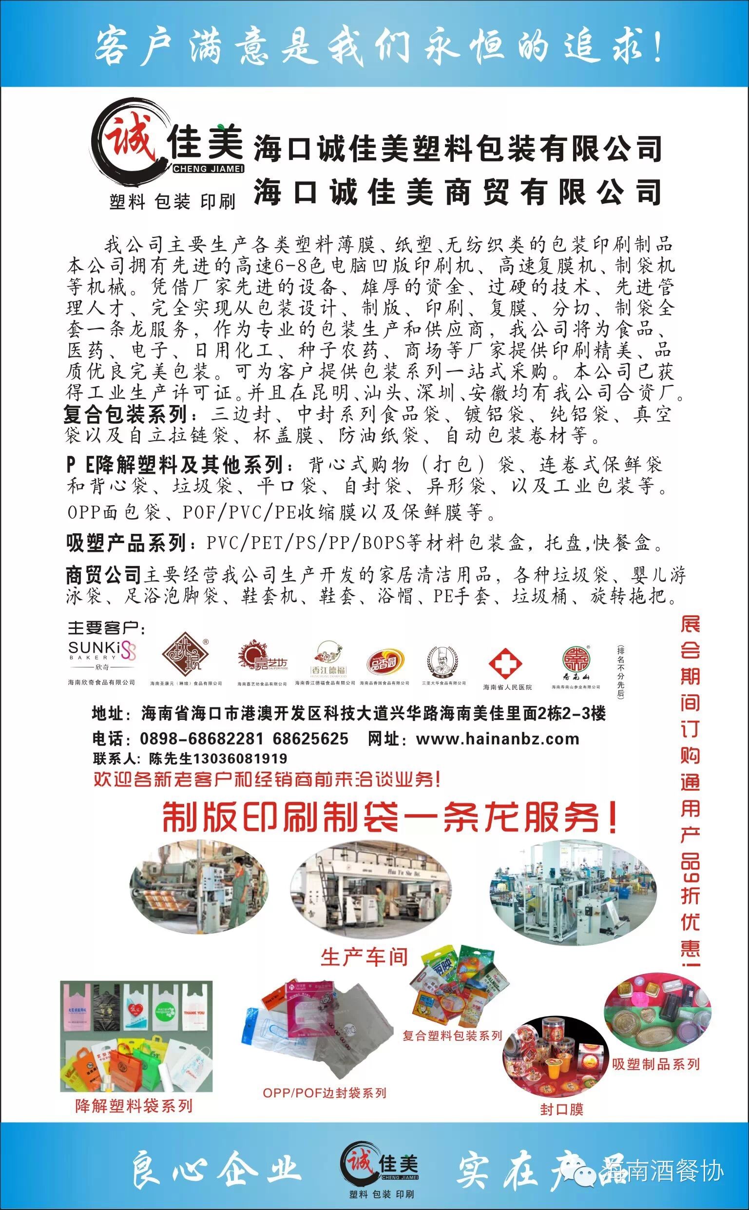 海口诚佳美塑料包装有限公司主要生产各类塑料薄膜,纸塑,吸塑,注塑等包装制品,该集团公司拥有先进的多台高速6-8色电脑凹版印刷机,高速复膜机,制袋机,吸塑机,分切机等机械。凭借厂家先进的设备,雄厚的资金,过硬的技术,先进管理人才,完全实现从包装设计,制版,印刷,复膜,分切,制袋全套一条龙服务,作为专业的包装生产和供应商,海口诚佳美塑料包装有限公司将为食品,医药,电子,日用化工,种子农药,餐饮酒店,商场超市等厂商提供印刷精美,品质优良完美包装,公司在昆明,汕头,深圳,安徽均有该公司合资厂。