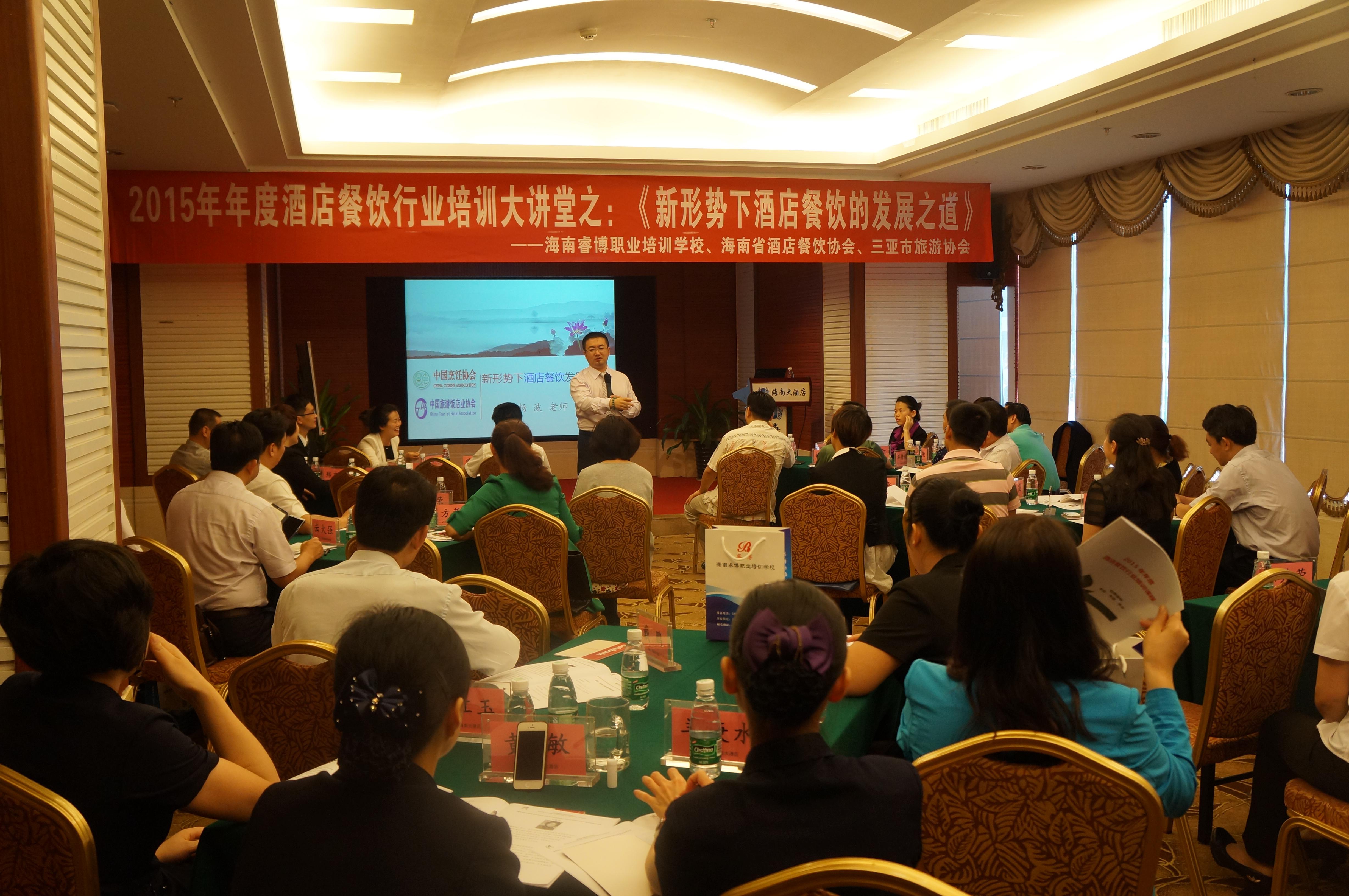 日前,由海南睿博职业培训学校、省酒店与餐饮行业协会、三亚市旅游协会共同打造的2015年年度酒店餐饮行业培训大讲堂首期班《新形势下酒店餐饮的发展之道》在海南大酒店落下帷幕。据了解,本次课程吸引了来自市旅游委、金莲花酒店管理集团、海南韩尚商务有限公司(汉江婷韩国料理)、台达高尔夫、汇银大酒店、宝华大酒店、三湘人家、七仙岭君澜度假酒店、省华侨商业学校等省内多家知名酒店和餐饮企业负责人参加,共50余人参加了此次培训,大家表示通过两天的学习让大家都受益匪浅。