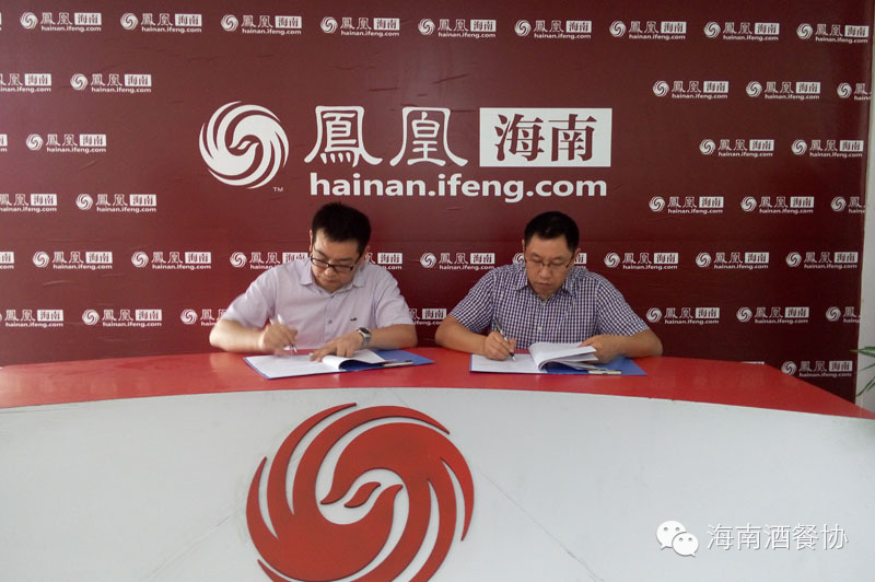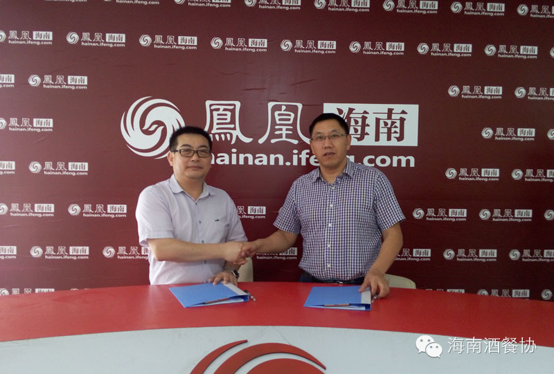 拾味馆总经理龚季弘与凤凰海南首席执行官、总编辑任永昌签约。