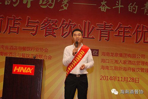 为深化和推进“我的中国梦”主题教育实践活动,传递正能量,树立行业青年楷模,展现行业青年楷模奋斗足迹和成功案例,弘扬企业青年爱岗敬业,立足岗位艰苦奋斗,奉献社会的精神风貌,引导广大青年树立“劳动创造财富、奋斗成就人生、行动实现梦想”的价值观念,在国际旅游岛建设中建功立业,助推中国梦的实现。海南省酒店与餐饮行业协会、海南省酒店与餐饮工会联合会主办,海南龙泉集团有限公司、海南东路基酒店管理有限公司、海口三湘人家酒店管理有限公司、海口餐谋天下酒店管理有限公司、海南三厨新海府餐饮管理有限公司、海南汉群厨房好味餐饮有限公司协办的我的中国梦-奋斗的青春最美丽《海南酒店与餐饮业青年优秀楷模报告会》于2014年11月28日上午在海航大厦三楼报告厅隆重举行。