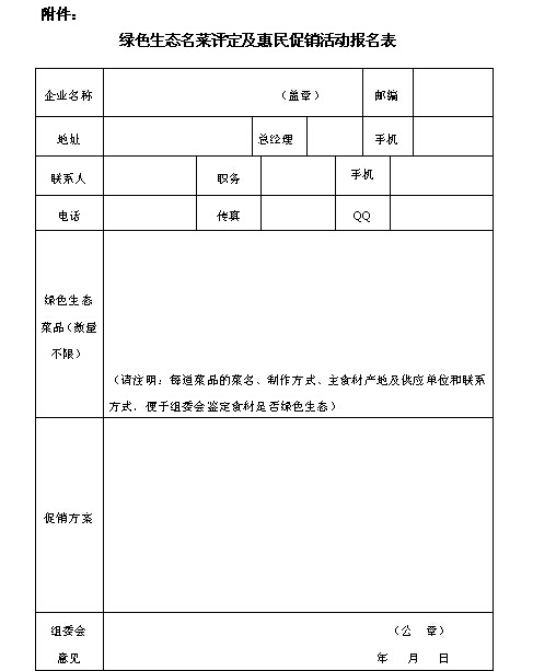 附件:海南酒店餐饮企业绿色生态名菜评定及惠民促销报名表