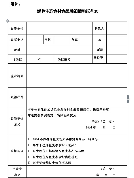 1、参展企业需提供营业执照、产品合格证及相关绿色有机、无公害认证证书等证件复印件。