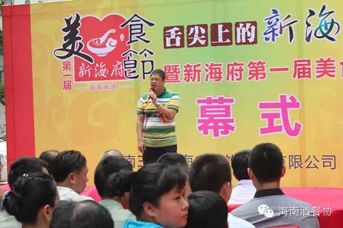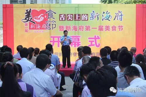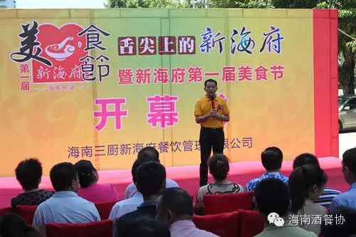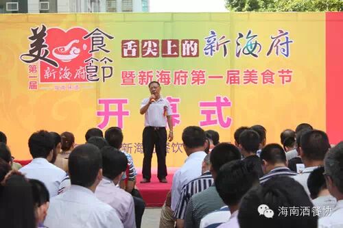 当天,省人大常委会原秘书长、省酒店与餐饮行业协会会长翟培基,省烹饪协会名誉会长李克昌、会长郭绍明、常务副会长林俊春,省酒店与餐饮行业协会主席团主席副会长王美、侯群英、邱正娟、周华忠、吴乾运及秘书长陈刚等海南酒店餐饮行业同仁共150多人到场参加了开幕庆典活动,公司董事长陈建胜先生代表公司向莅临的领导嘉宾致欢迎词。海南省酒店与餐饮行业协会会长翟培基等致辞庆祝新海府第一届美食节的开幕,并对新海府的成就表示了肯定与支持。