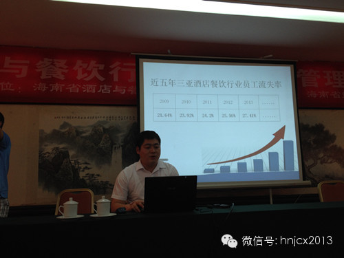 马泓波经理介绍了酒店餐饮行业员工高流失率的详细情况,分析了员工离职的相关数据和原因,并列举了某酒店员工对酒店的看法,通过实例向企业展示了酒店在人力资源管理方面的具体情况,最后也向企业提出了人力资源管理和应对员工离职的意见和建议。会上,海南新国宾馆、海南拾味馆餐饮连锁管理有限公司、海口喜来登温泉度假酒店等酒店与餐饮企业人力资源管理部门负责人和海南外国语职业学院、海南经济技术学校等学校相关负责人就人才培养、人才输出、人才引进、人才培训等人力资源问题进行了交流和探讨。