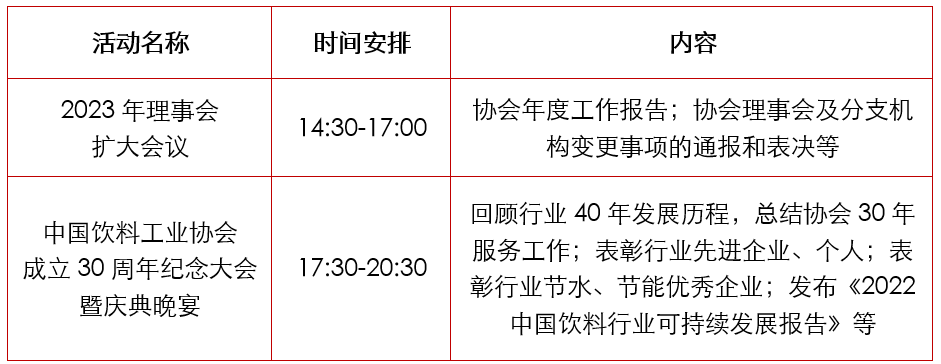预通知 | 中国饮料工业协会2023年理事会扩大会议暨协会成立30周年纪念大会