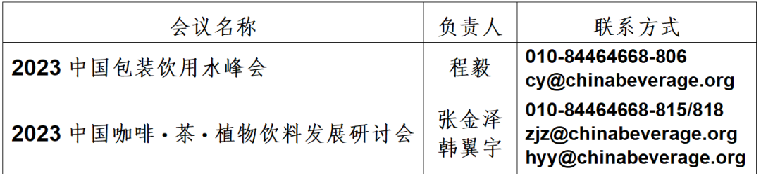 请于协会官网www.chinabeverage.org 下载报名回执、查看费用明细,或致电会议联系人。