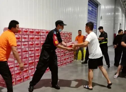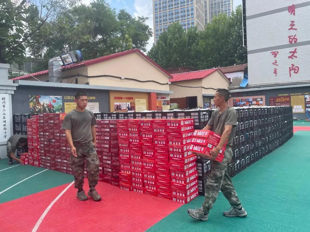 7月24日凌晨,大别山野岭饮料股份有限公司联合安徽六安市迎驾集团慈善基金会捐赠24万瓶剐水彻夜奔赴送达灾区。