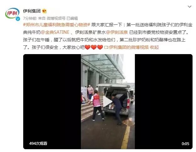 伊利集团通过中国红十字基金会,第一时间紧急向河南调拨首批1万箱产品捐助,包括牛奶、奶粉、酸奶、矿泉水等物资,驰援救援人员和受灾群众。