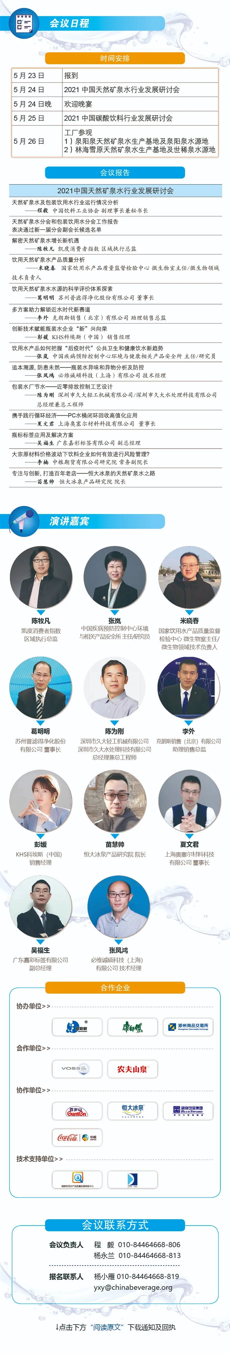 中饮协天然矿泉水分会第十四次会员大会暨行业发展研讨会,定于2021年5月24日在吉林抚松召开。本次大会将以“创新、绿色、开放、赋能”为主题,邀请政府、机构以及行业知名专家、企业高管与会,围绕天然矿泉水产品的食品安全与品质提升、环保政策趋势与节水技术创新、多元化消费场景与产品定位,以及天然矿泉水生产过程风险防控、生产技术改良、水源水质评价等行业热点分享专题报告及国际、国内最新资讯,为广大企业提供“增品种、提品质、创品牌”的战略思路和实战指点。预知更多详情或报名参会,请点击文末阅读原文。