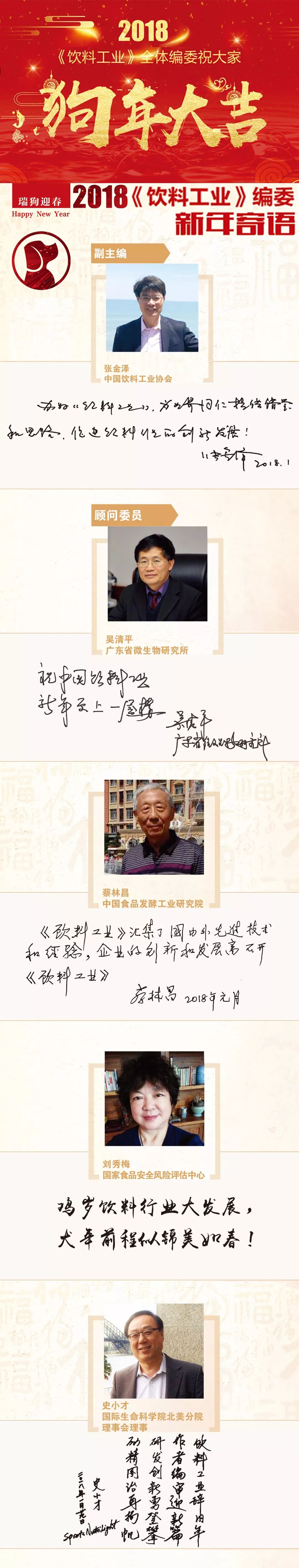 《饮料工业》编委会全体委员恭祝大家狗年大吉!