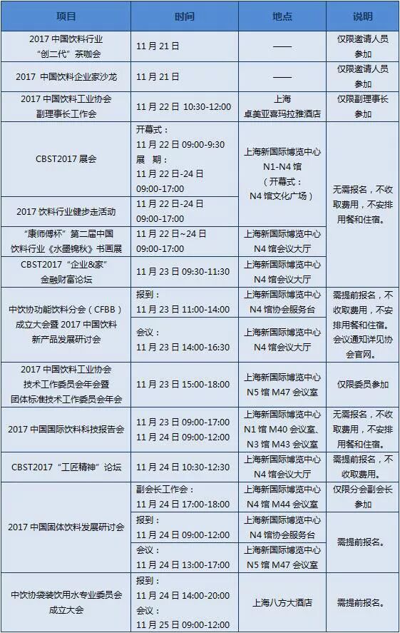 CBST2017展会期间十余项行业参与度高、影响力大的行业专业活动亦将同期举行,与CBST2017同场交相辉映,增彩添光。届时,中国饮料业界领袖、精英将聚首上海,共策未来!