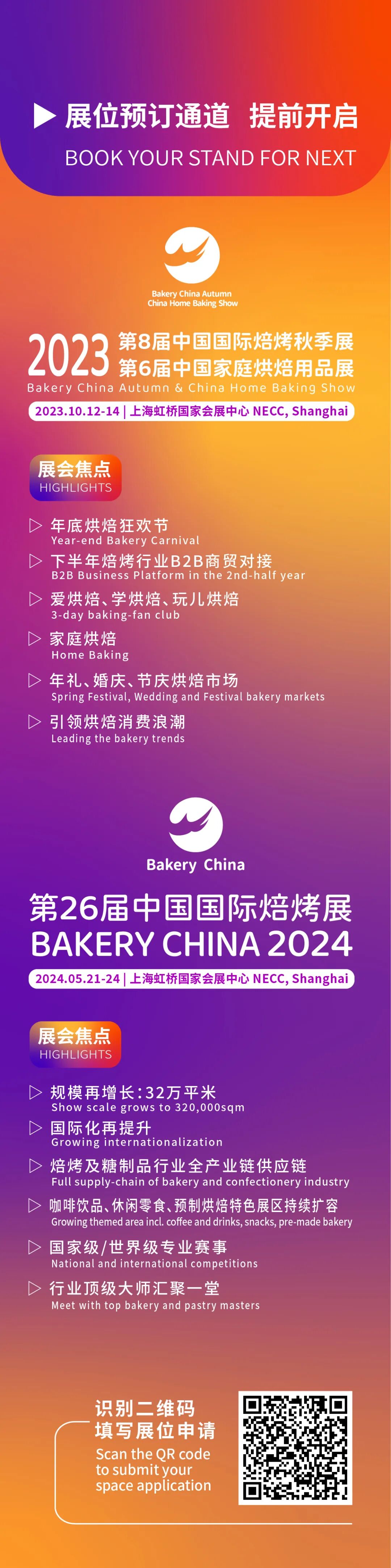 点击【阅读原文】,免费领取2023第25届中国国际焙烤展览会(2023.5.22-25,上海虹桥国家会展中心)参观门票!