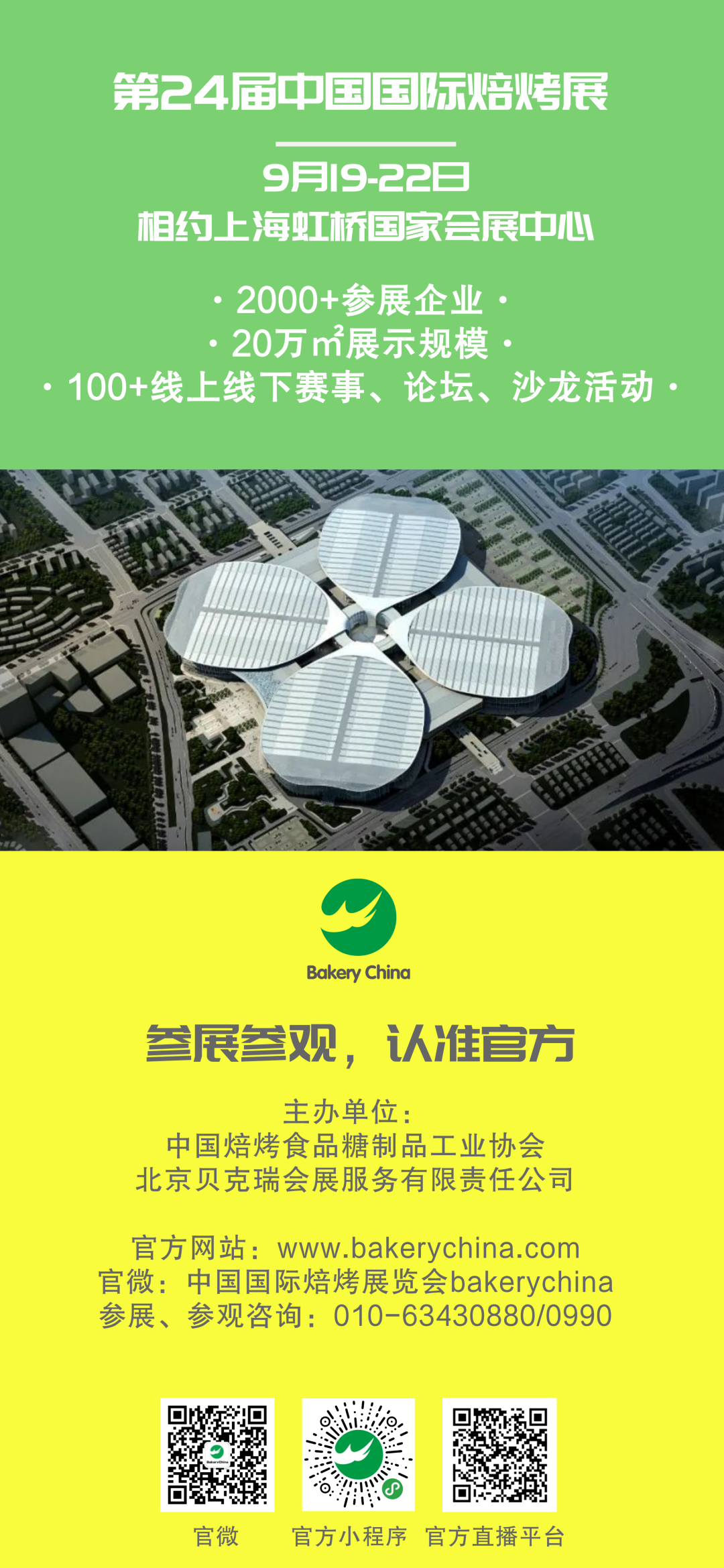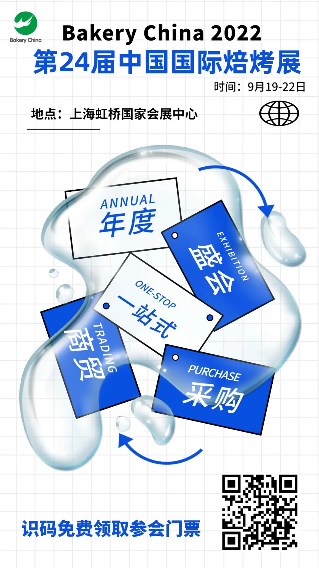 点击【阅读原文】,免费预约参观2022年9月19-22日在上海虹桥国家会展中心(崧泽大道333号)举办的“第24届中国国际焙烤展览会”,立省50元门票费!