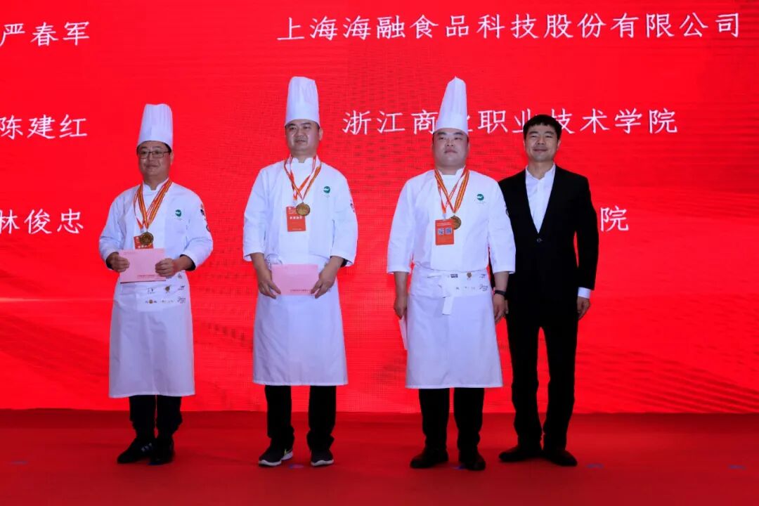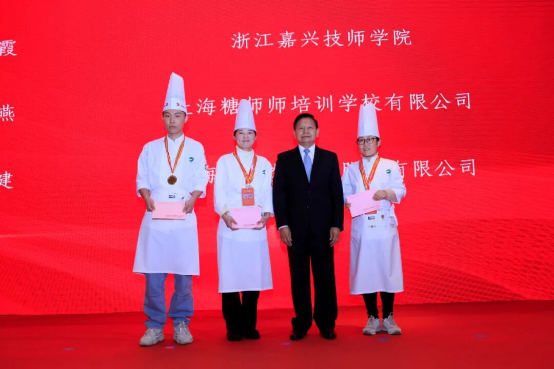 中国焙烤食品糖制品工业协会理事长张九魁、执行理事长朱念琳、副理事长兼秘书长张帅,中国财贸轻纺烟草工会轻工烟草工作部部长杨栋国、上海市职业技能鉴定中心主任孙兴旺等领导和嘉宾,本届赛事所有监审员和裁判员,以及来自协办单位和赞助单位的代表共同出席了活动并为获奖选手颁奖。颁奖仪式由中焙糖协职业技能工作委员会秘书长俞嘉毅主持。中焙糖协副理事长兼秘书长张帅宣读了2021年全国行业职业技能大赛——第二十二届全国焙烤职业技能竞赛获奖名单及“全国技术能手”表彰决定。来自天津品客源食品科技有限公司的张高杰、湖北省宜昌市伍家岗区象岛烘焙工作室的邓晓康、南京卢卡斯烘焙器具有限公司的冯英杰三位选手获得了“安琪酵母杯”全国面包技能比赛金奖,来自浙江嘉兴技师学院的万霞、上海糖师师培训学校有限公司的郑燕、上海元祖梦果子股份有限公司的宋健三位选手荣获“维益杯”全国装饰蛋糕技能比赛金奖,上海海融食品科技股份有限公司严春军、浙江商业技术学院的陈建红、中山市技师学院的林俊忠三位选手最终夺得“顺南食品杯”全国月饼技能比赛的金奖。全部九名金奖选手,将由中国焙烤食品糖制品工业协会向人力资源和社会保障部提请申报“全国技术能手”表彰奖项。另外,每个项目综合评分排名在第4至第8名的共计15名选手获得本届赛事的银奖,以及排名第9至第15名的共计22名选手获得铜奖,组委会对每名获奖选手均授予了相应的荣誉和物质奖励。“飞天梦,中国梦”,载人航天精神,是我党以伟大的建党精神为源头的精神谱系中的重要组成部分。恰值建党百年,本届全国焙烤职业技能竞赛决赛以“飞天梦”为主题,正是希望以焙烤食品独特的艺术面包、巧克力工艺、拉糖工艺、翻糖工艺、裱花工艺等惟妙惟肖的塑形艺术向中国航天精神致敬,向党的百年华诞献礼!而建国以来我国航天工业从筚路蓝缕到完成载人航天壮举一路走来,所表现出来的“特别能吃苦、特别能战斗,特别能攻关、特别能奉献”的精神,也在我国焙烤食品糖制品工业从弱小到追赶再到赶超的发展过程中体现的淋漓尽致,正是一代又一代的焙烤行业同仁肩负时代使命,逐梦星辰大海的顽强拼搏和不懈奋斗,才有了我们今日行业发展欣欣向荣、在国际大赛中摘金夺银地壮丽场景。本届赛事参赛选手深刻领会主题要求,充分发挥想象力和技能操控力,围绕“飞天梦”呈现出了众多精彩绝伦的作品,吸引了大量在线观众的观看和传播,中国焙烤大赛直播平台观众数最终突破32万人次。中焙糖协理事长张九魁致闭幕词,他全面总结出了本届大赛的特点,并对下一步行业技能人才队伍建设提出了希望,广大焙烤行业技术从业者要立足本职工作,刻苦钻研技术,发扬工匠精神,久久为功,善做善成,推动行业技术上一个新的台阶。在本届国赛颁奖仪式前,还进行了“全国五一巾帼标兵”的颁奖仪式,由中焙糖协提名,经中华全国总工会批准,行业竞赛专家、轻工大国工匠——干文华老师于2021年被中华全国总工会授予 “全国五一巾帼标兵”荣誉称号,中国财贸轻纺烟草工会轻工烟草工作部部长杨栋国宣读表彰决定,由张崇和会长为干文华老师颁奖。本届竞赛的成功举办离不开各主办单位的支持,同样也离不开行业企业、院校的赞助支持,颁奖仪式上,组委会对长期以来对行业职业技能竞赛工作作出了卓越贡献的上海市食品协会、上海市现代食品职业技能培训中心、上海市贸易学校、安琪酵母股份有限公司、维益食品(苏州)有限公司、顺南食品(惠州)有限公司等六家单位颁发了“突出贡献奖”。