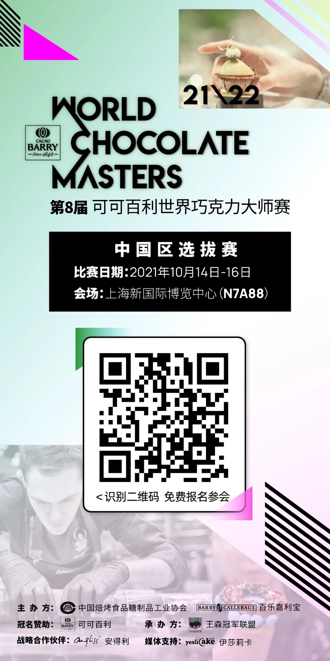 10月14-16日展会期间,将举办以下4大中国区选拔赛:第8届“可可百利”世界巧克力大师杯中国区选拔赛、第四届“安琪酵母杯”全国青年烘焙师创意面包大赛、第四届意大利国际烘焙赛中国选拔赛暨第二届世界面包大师中国青年精英赛总决赛、第五届亚洲西点师竞技大赛“黛妃杯”中国区选拔赛。让我们共同期待参赛选手的精彩表现。