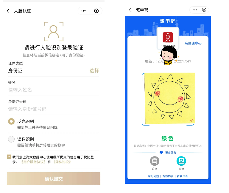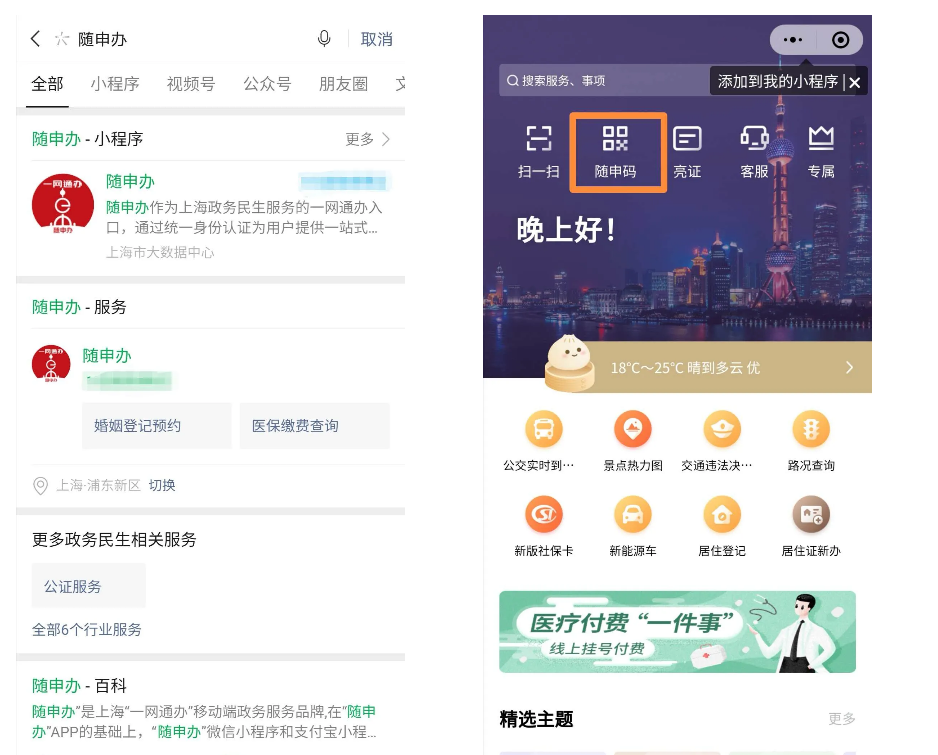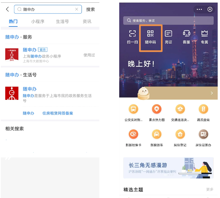 ●微信端:打开【微信】搜索【随申办】,点击【随申码】进入填写个人实名信息认证完成即可获取随申码。