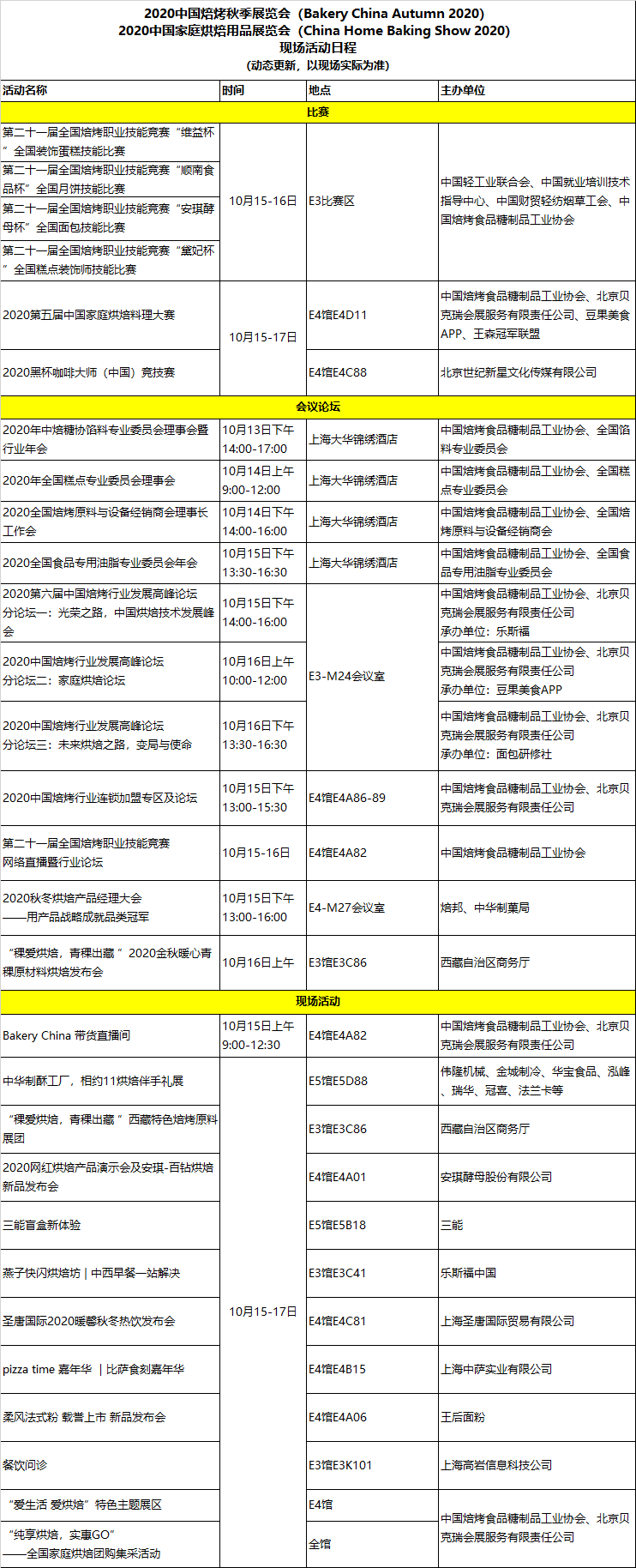 由中国焙烤食品糖制品工业协会、豆果美食、王森冠军联盟共同举办,新良主冠名和安佳、美的联合冠名的“2020第五届中国家庭烘焙料理大赛”也将在展会同期举办,服务每一个热爱烘焙的你。该项赛事自四年前创办以来一直深受海内外家庭烘焙爱好者的关注,每次赛事都吸引了上千万的社会关注和参与。今年我们将持续邀请更广泛的烘焙爱好者参与,并持续深化“家庭亲子”主题,让“动手一起做”连接家里的每一位成员,烘焙让生活更美好。“2020中国家庭烘焙料理大赛”现场还将聚焦“家庭烘焙与烘焙创业”主题,举办专题论坛与互动沙龙,为有需求的烘焙爱好者进阶为烘焙创业者、以及后续的创新创业发展提供持续的赋能。