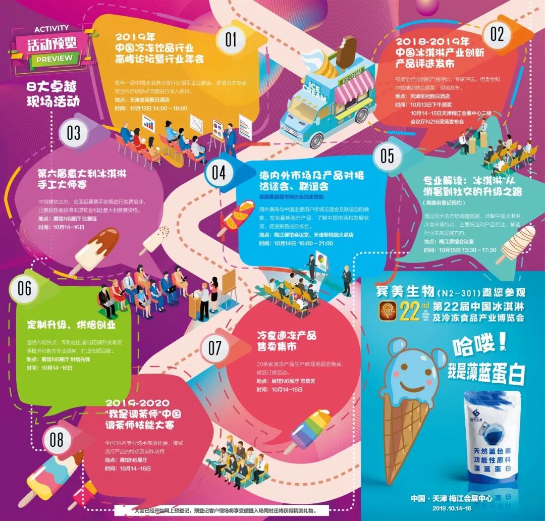 2019第22届中国冰淇淋及冷冻食品产业博览会(10月14-16日)规划面积42000平米,400余家中外专业展商齐聚津门。品牌成品、生产设备、包装设备、原辅配料各大板块的领军企业将悉数到场参展。大会接待工作全面启动,现在办理预登记,到现场免首日入场费还可获得精彩好礼!