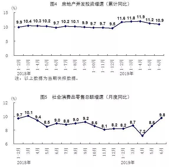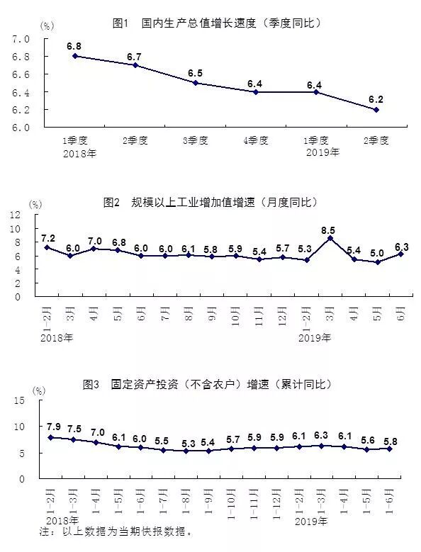 (2)根据季节调整模型自动修正结果,对近一年来各期国内生产总值、规模以上工业增加值、固定资产投资(不含农户)、社会消费品零售总额环比增速进行修订。修订结果及2019年二季度GDP环比数据、2019年6月份其他指标环比数据如下:
