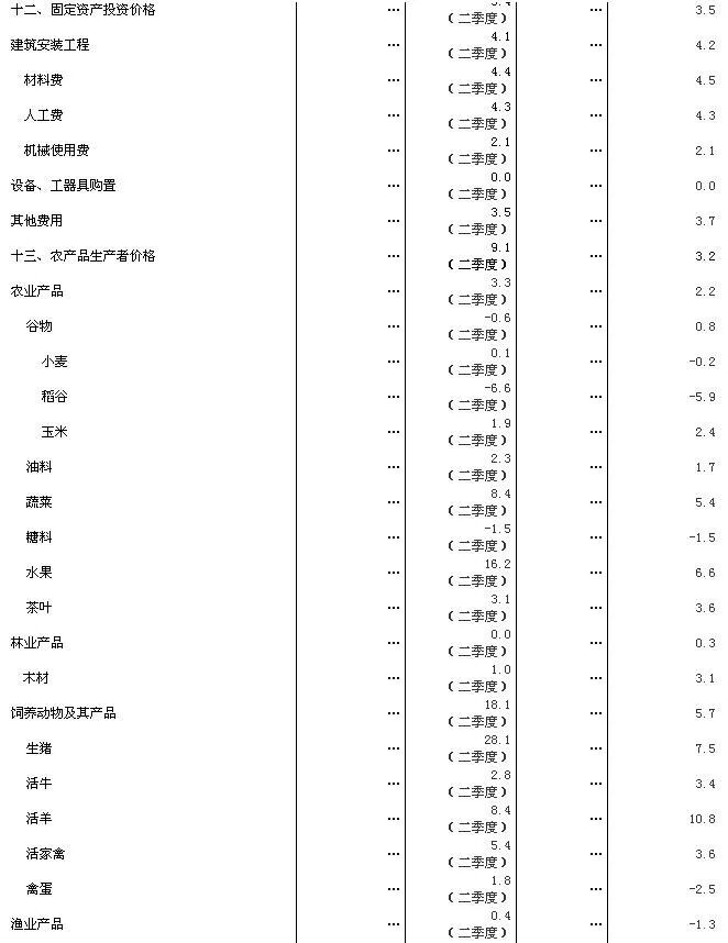 上半年,全国工业生产者出厂价格同比上涨0.3%,涨幅比一季度扩大0.1个百分点。6月份,全国工业生产者出厂价格同比持平,环比下降0.3%。上半年,全国工业生产者购进价格同比上涨0.1%,涨幅与一季度持平。6月份,全国工业生产者购进价格同比下降0.3%,环比下降0.1%。