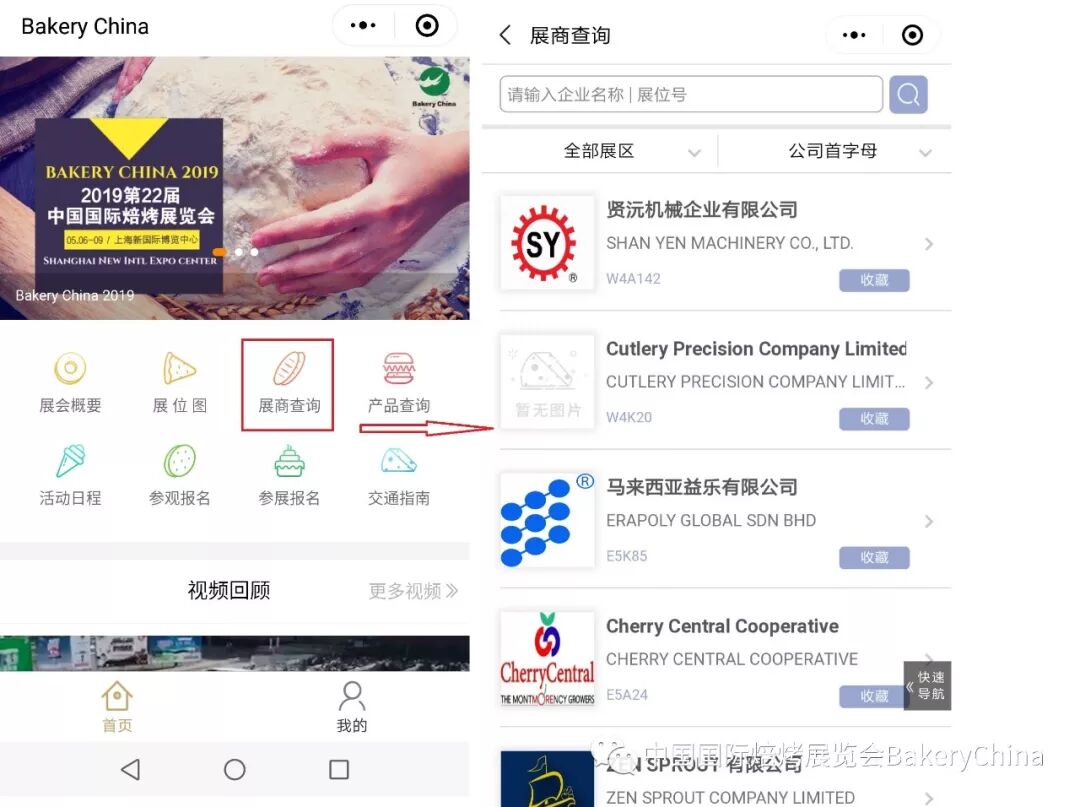 进入小程序之后,点击【展商查询】即可查询Bakery China 2019所有参展企业及产品信息。