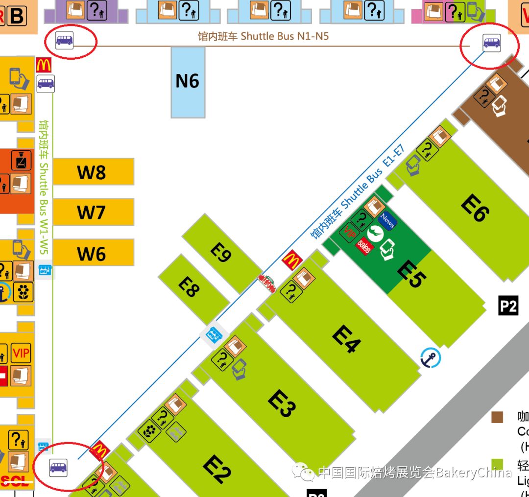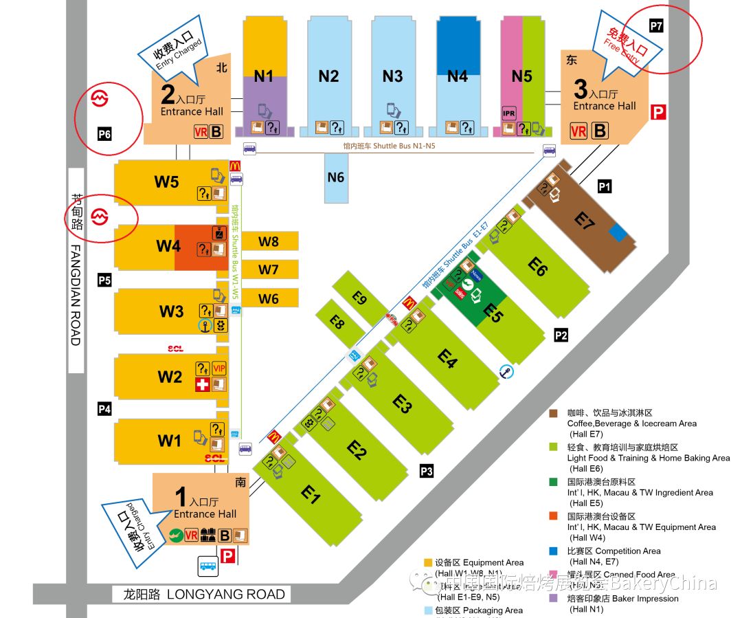 - 从1号收费入口到3号免费入口,Bakery China主办方有贴心的为小伙伴们安排免费巴士或者步行爱好者还可以选择步行20分钟抵达3号免费入口哦,下图红色为巴士路线图哦!