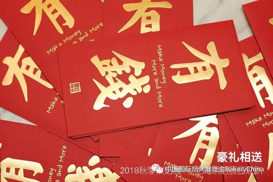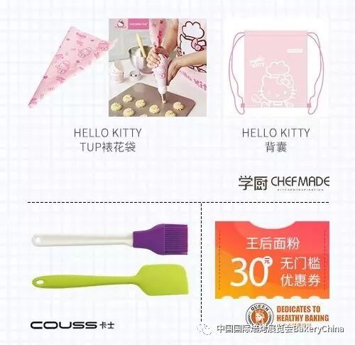 展会现场各种礼物送不停——刮板,送了!围裙,送了!爆款面粉,一样送送送!