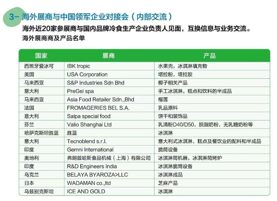 带展商名称、主要展品及海外展商国旗标志。