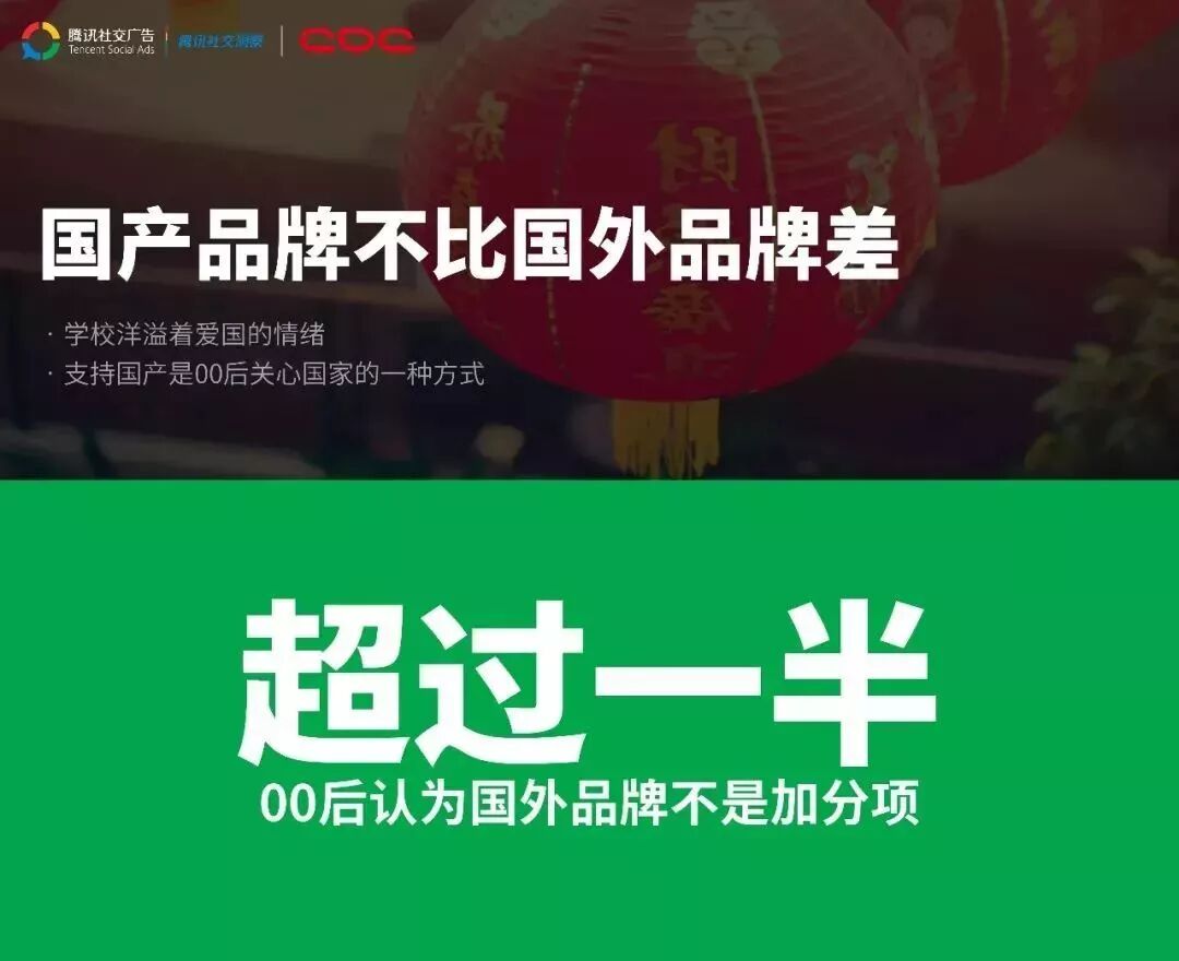 7、国产品牌不比国外品牌差。支持国产变成了他们关心国家的一种方式。超过一半00后认为国外品牌不是加分项。
