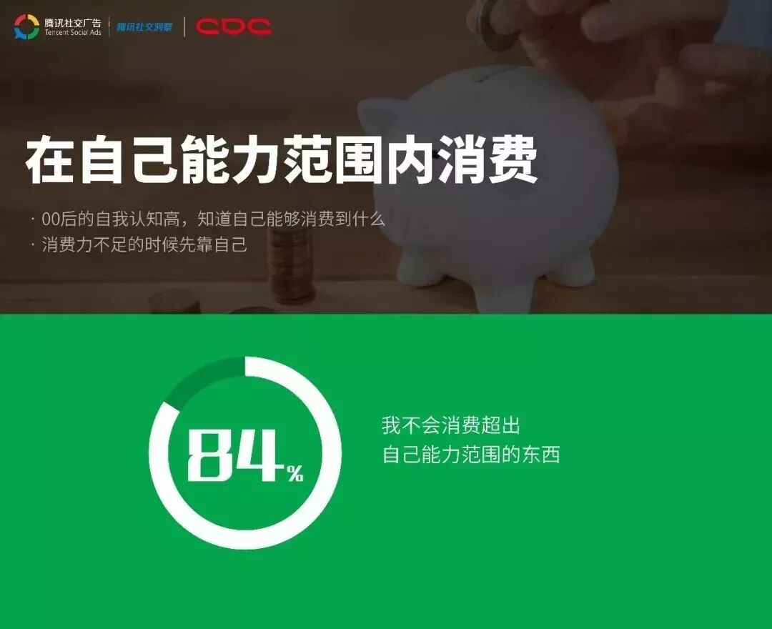 4、84%的00后表示在自己的能力范围内付费,不会消费超出能力范围内的产品。