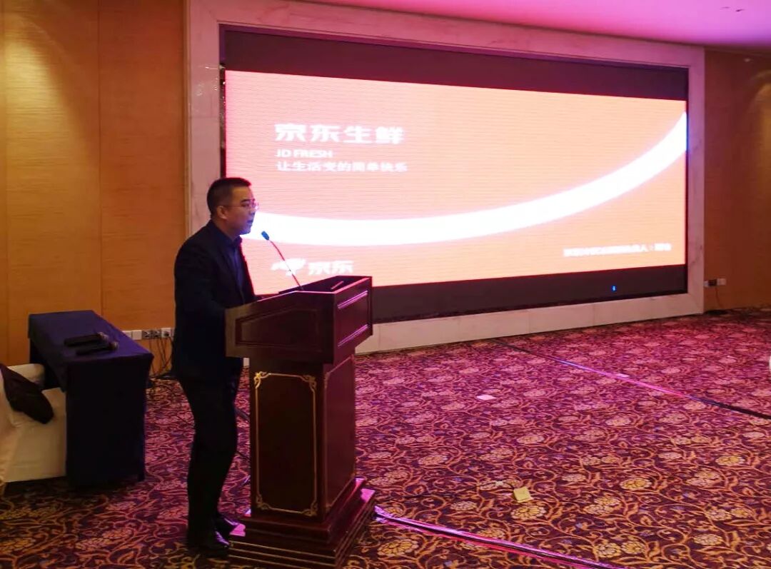京东冷饮冰淇淋负责人阚冶以《京东生鲜—让生活变的简单快乐》为题为与会代表做了专题讲座。他对京东集团十三年来的高速发展历程和遍布全国的物流基础建设进行了介绍,并对目前冰淇淋在京东进行线上销售的情况和未来发展趋势进行了详尽讲解。