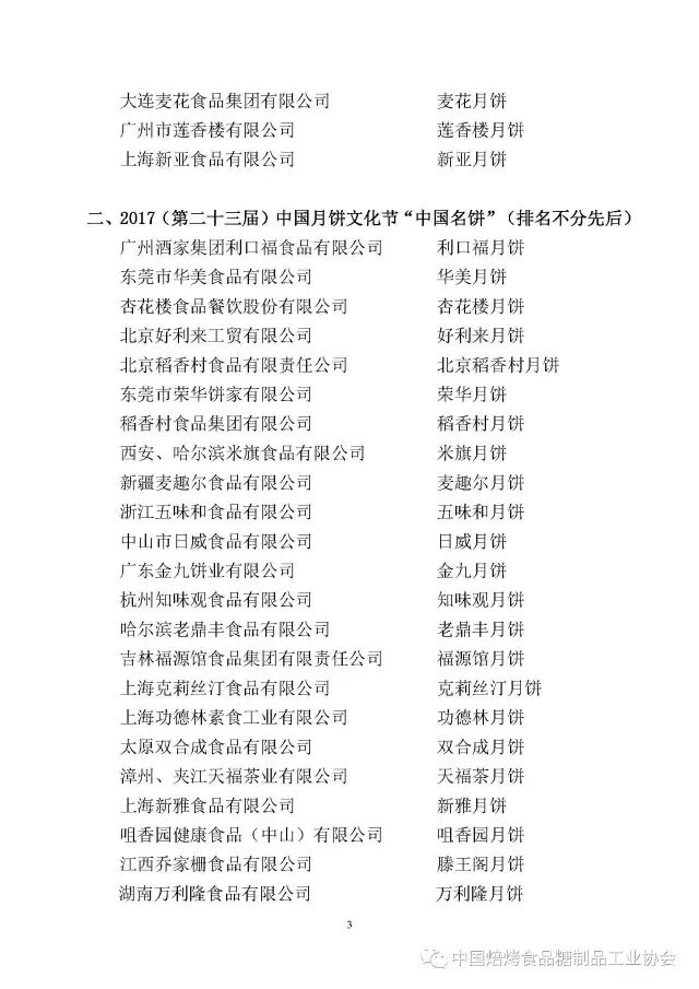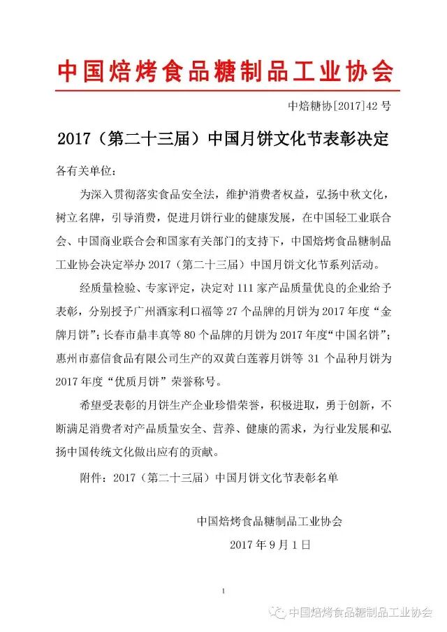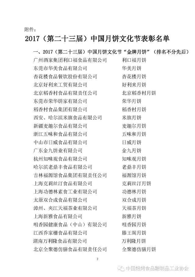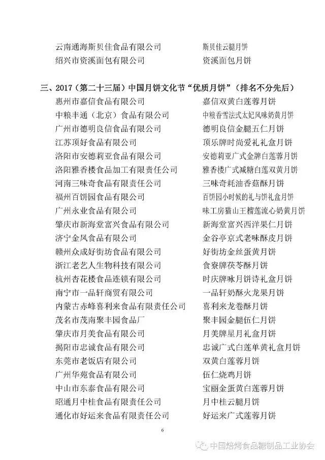 中焙糖协|2017(第二十三届)中国月饼文化节表彰决定