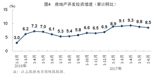 过剩产能有序化解,上半年全国工业产能利用率为76.4%,比上年同期提高3.4个百分点。房地产去库存效果继续显现,6月末商品房待售面积同比下降9.6%,降幅比3月末扩大3.2个百分点。企业杠杆率下降,5月末规模以上工业企业资产负债率为56.1%,同比下降0.7个百分点。企业成本继续降低,1-5月份规模以上工业企业每百元主营业务收入中的成本为85.62元,同比减少0.04元。短板领域得到加强,上半年生态保护和环境治理业、水利管理业、交通运输仓储和邮政业、教育投资同比分别增长46.0%、17.5%、14.7%和17.8%,均明显快于同期固定资产投资增速。