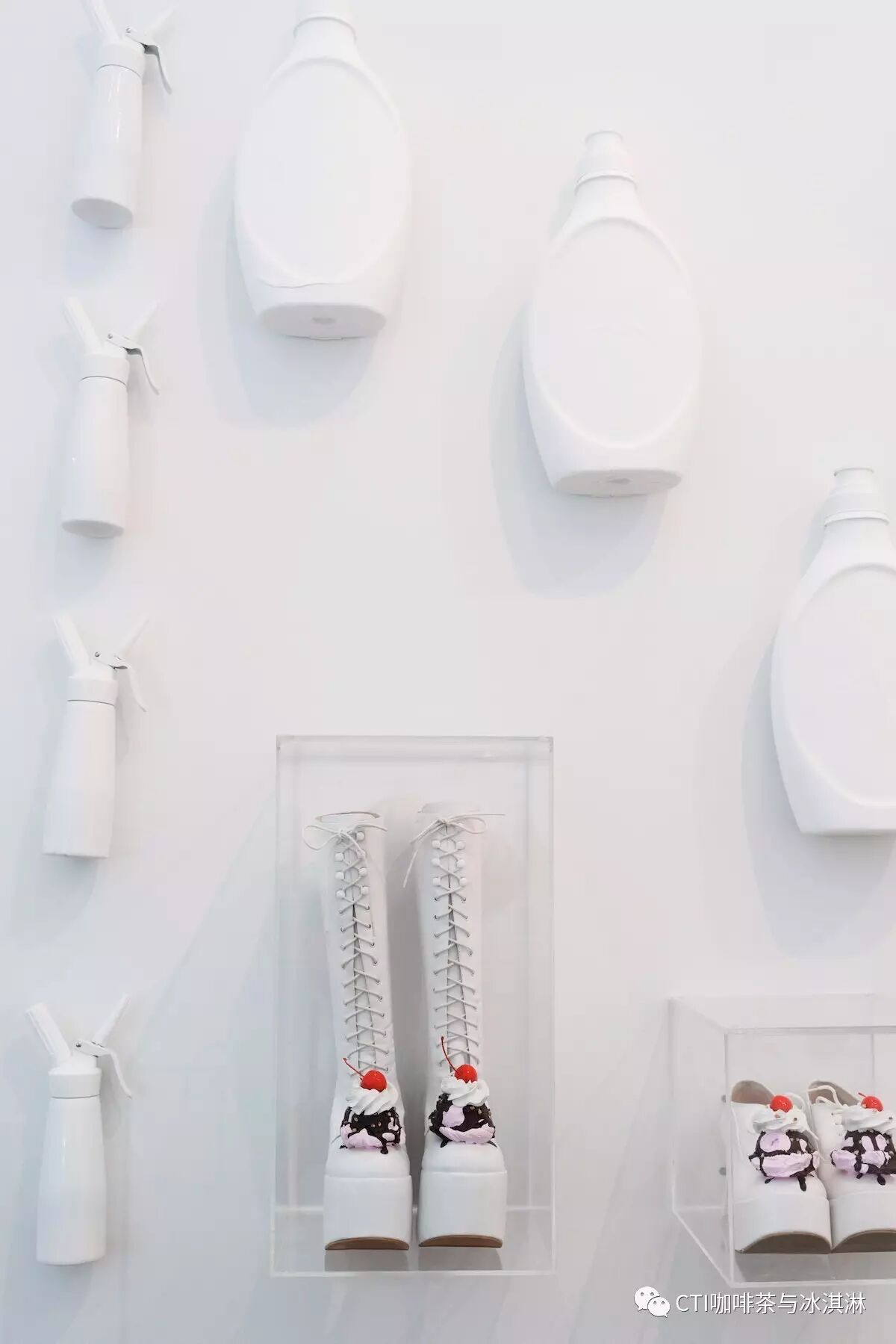 通道被布置成全白,陈列着各种器具,都是白色的,穿过这些就是五颜六色的棒冰模型房。