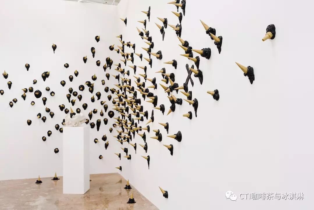 这是来自Abel Bentin的作品,他通过粘着墙上和人像脸上的黑色冰淇淋,表达混沌,腐败堕落和缺乏纯真之意。