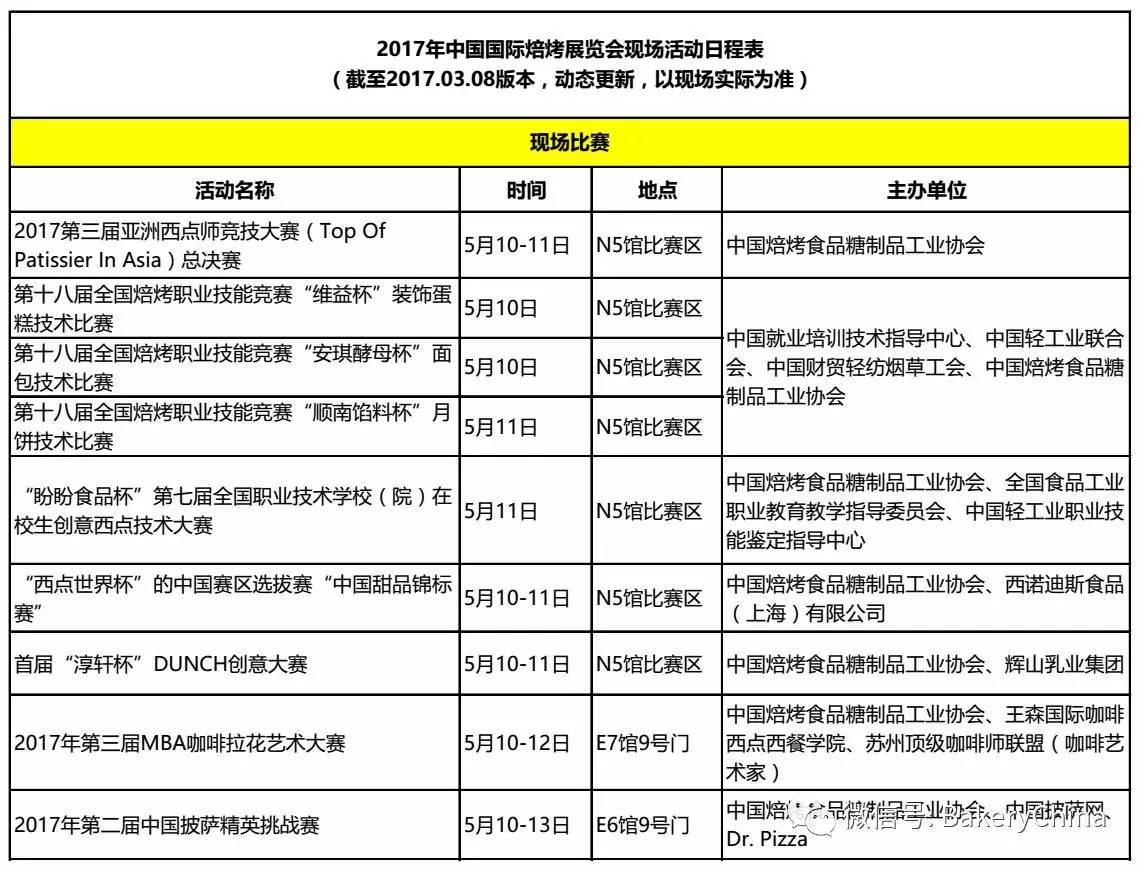 以下是Bakery China 2017现场活动日程表(第一稿),敬请期待哦~~
