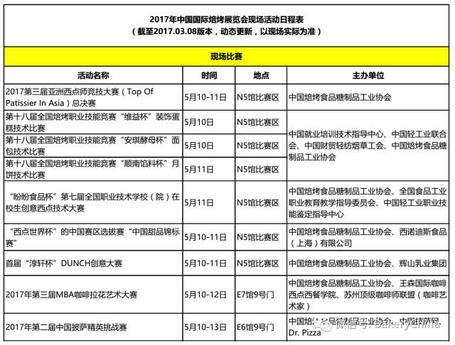 以下是Bakery China 2017现场活动日程表(第一稿),敬请期待哦~~
