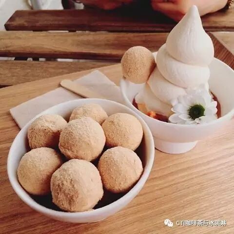 昭福豆粉雪球是另一款人气餐品,在冰淇淋球外面厚厚地围了一层香淳的豆粉,冰淇淋球相对来说有点儿硬,咬开以后,里面有软软的年糕和甜糯的南瓜,各种不同的香甜在口中层层漫延。