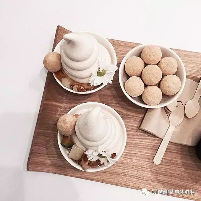 点缀在旁的有香软冰凉的豆粉雪球、甜糯的南瓜、香甜可口的蜂巢,还有各种香脆的坚果以中和甘甜的味道,口感层次非常丰富。