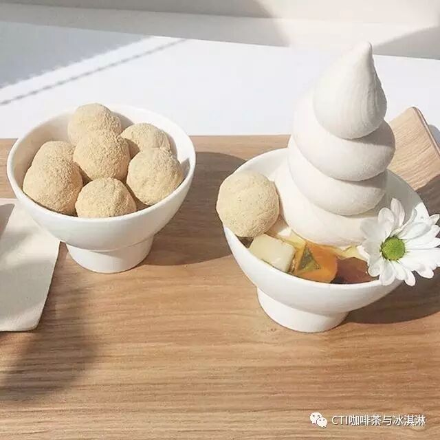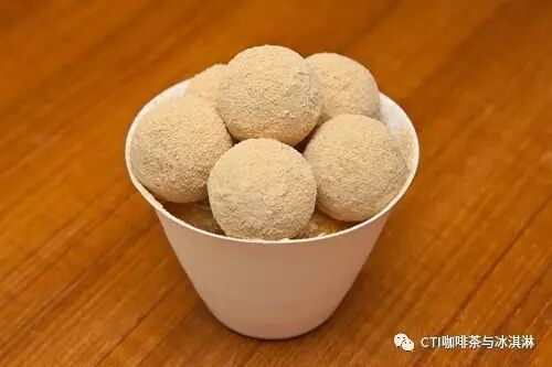 豆粉雪球顾名思义,在冰淇淋球外面厚厚地围了一层香淳的豆粉,冰淇淋球相对来说有点儿硬,咬开以后,里面有软软的年糕和甜糯的南瓜,各种不同的香甜在口中层层漫延。