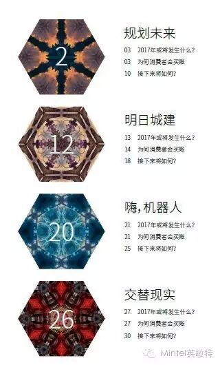 “非现金支付方式、人工智能和自动化方式将有更多进展。消费者越发觉得万事皆有可能,他们期盼高效率,渴望定制化,更接受新技术,生活处处都是机器人。”