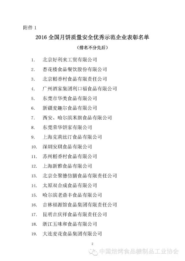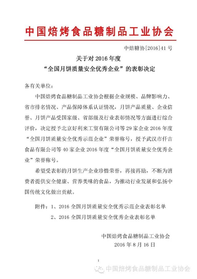 中焙糖协|2016月饼优秀企业表彰决定
