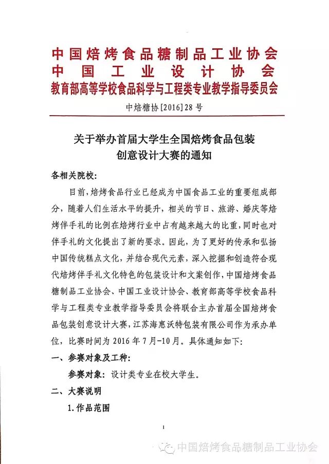 【协会活动】关于举办首届大学生全国焙烤食品包装创意设计大赛的通知