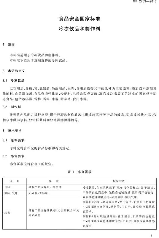 根据国家卫生计生委2015年第9号公告:《食品安全国家标准 冷冻饮品和制作料》(GB 2759-2015),自 2016年 11月 13 日起实施,现予以公布(见附件)。