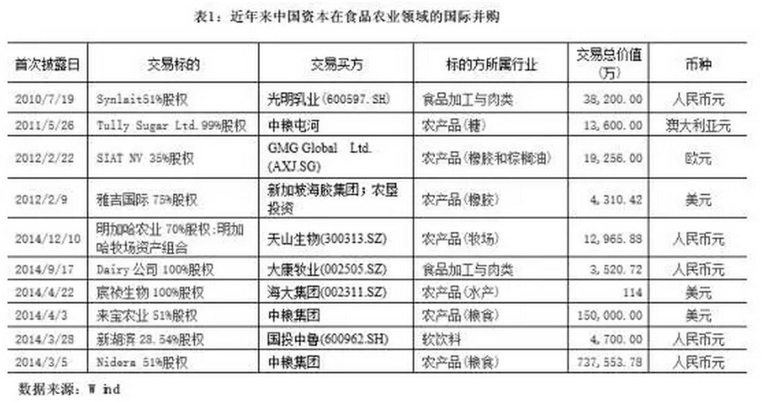 在动物蛋白行业方面,特别是乳业、肉业领域,国内食品龙头企业纷纷加快走出去步伐。光明乳业于2010年7月以约3.82亿元人民币收购新西兰第二大乳品企业Synlait乳业公司,建立供应稳定、质量优良的原料供应基地,并为公司进入高端婴儿奶粉市场提供市场切入点和生产基地。伊利、蒙牛、雅士利亦在新西兰设厂,圣元乳业远赴法国投资大规模乳清粉生产基地。近两年,由于牛肉结构性的供给短缺,中国企业积极进行海外投资以供应国内市场以及全球市场。新希望于2013年收购了澳大利亚第四大牛肉加工商Kilcoy。随后,新希望又继续收购了一家美国牛肉加工企业Ruprecht。2015年9月,上海梅林计划通过现金增资方式,认购新西兰的第二大农产品出口商——银蕨牧场牛肉有限公司,实现控制国外优质牛羊肉上游资源的战略布局。2015年10月,山东得利斯成功签订了澳洲第七大牛肉加工商的部分股权收购协议,实现从猪肉加工市场到牛肉市场的业务拓展。
