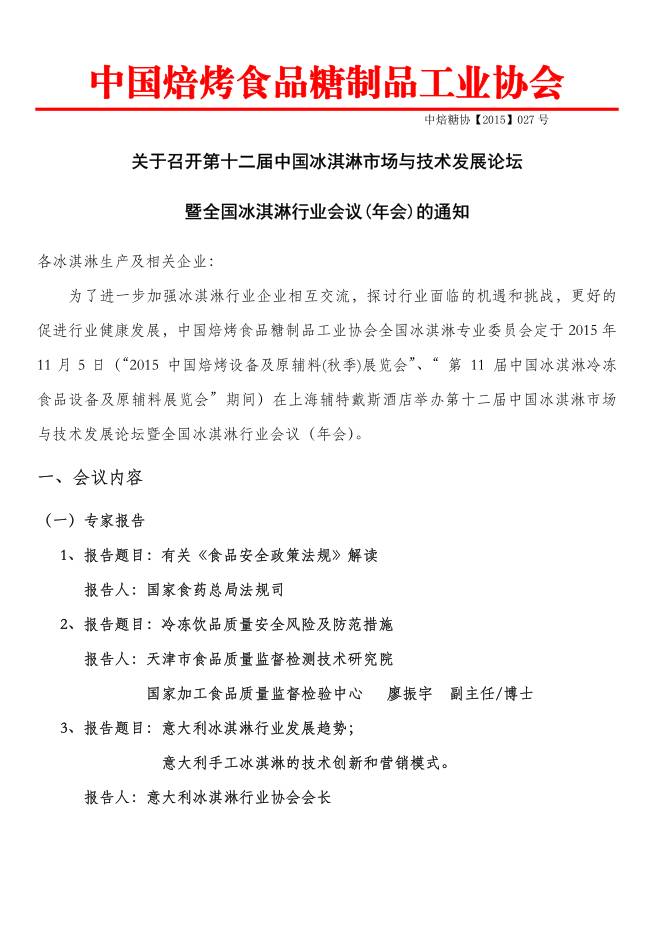 【协会活动】关于召开第十二届中国冰淇淋市场与技术发展论坛 暨全国冰淇淋行业会议(年会)的通知