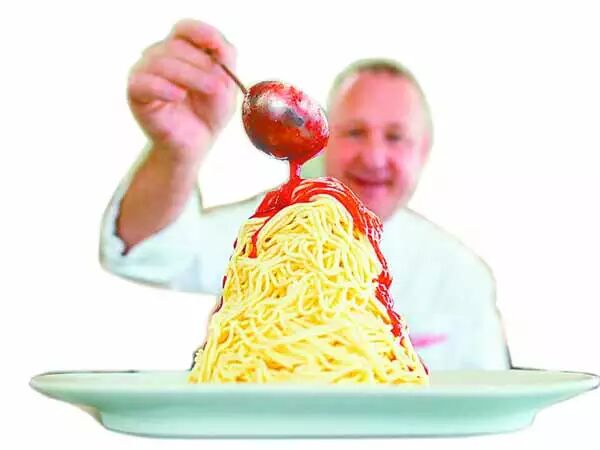 身穿白色制服的达里奥今年已64岁,仍工作在冰淇淋店的“第一线”。只见他身手利索地准备好各种材料后,开始现场给顾客们演示意大利面冰淇淋的做法:先挤些鲜奶油在盘子上打底,再透过面条挤压器用力压香草冰淇淋,产生面条般的外观,接着在“面条”上淋了一层草莓酱,看起来像番茄酱,最后撒上磨碎的杏仁或白巧克力碎片,当作意大利干酪。两三分钟后,一盘逼真的“意大利面”就做好了。