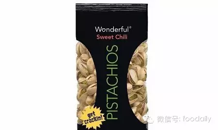 在坚果方面,带壳的开心果是很多生产商都喜欢的产品配料。来自洛杉矶的派拉蒙公司也加入到了辛辣浪潮中来,推出了拥有椒盐胡椒风味、淡盐味以及甜辣椒味三种口味的美味焙烤开心果。该产品采用黑色和绿色的7盎司袋式包装,十分容易辨认,对于那些想吃到咸味零食或者是希望吃到有红辣椒口味甜食的消费者来说,这是一个很有吸引力的选择。